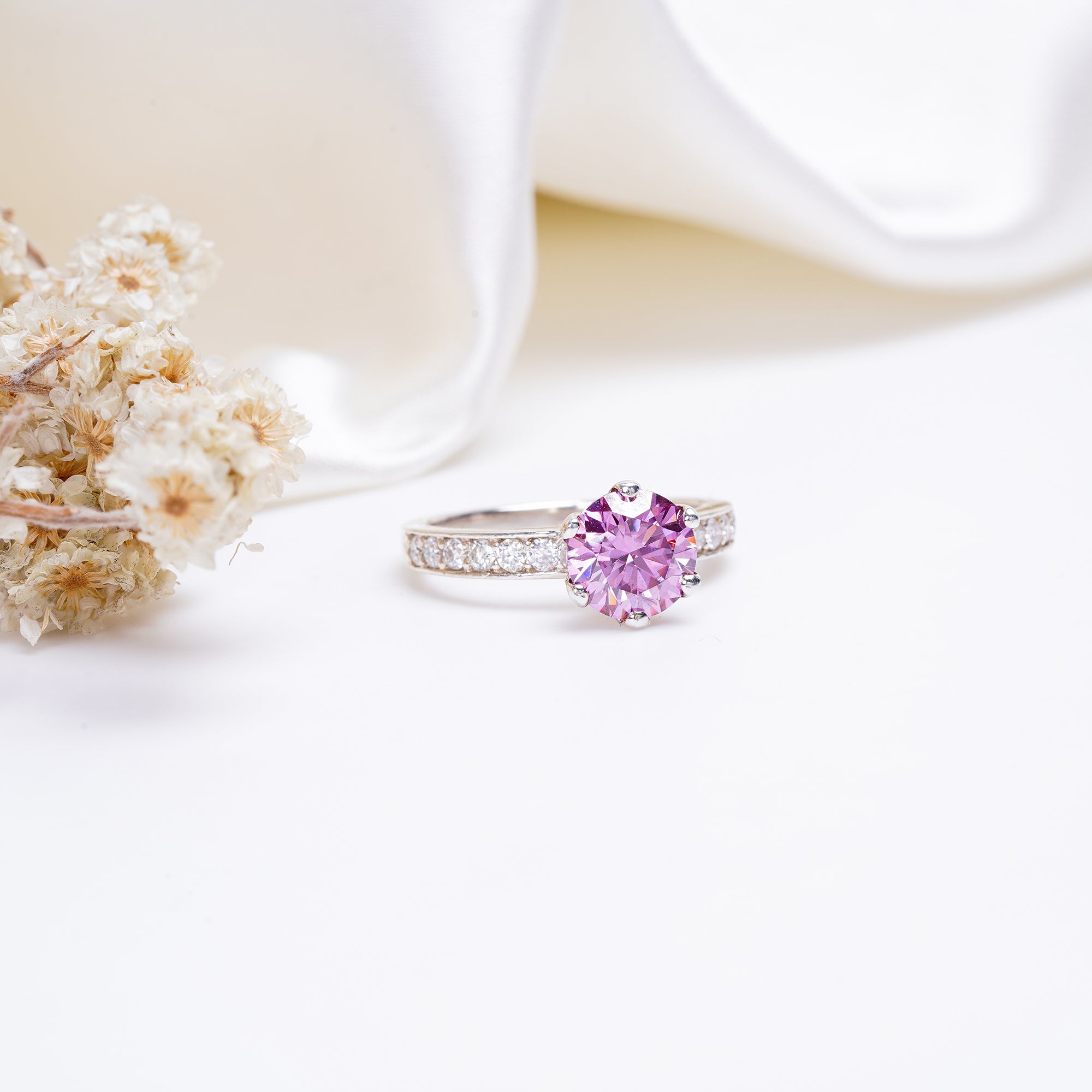 Stone: 1.50 ct Round Brilliant Cut Pink Moissanite (7.5 mm)