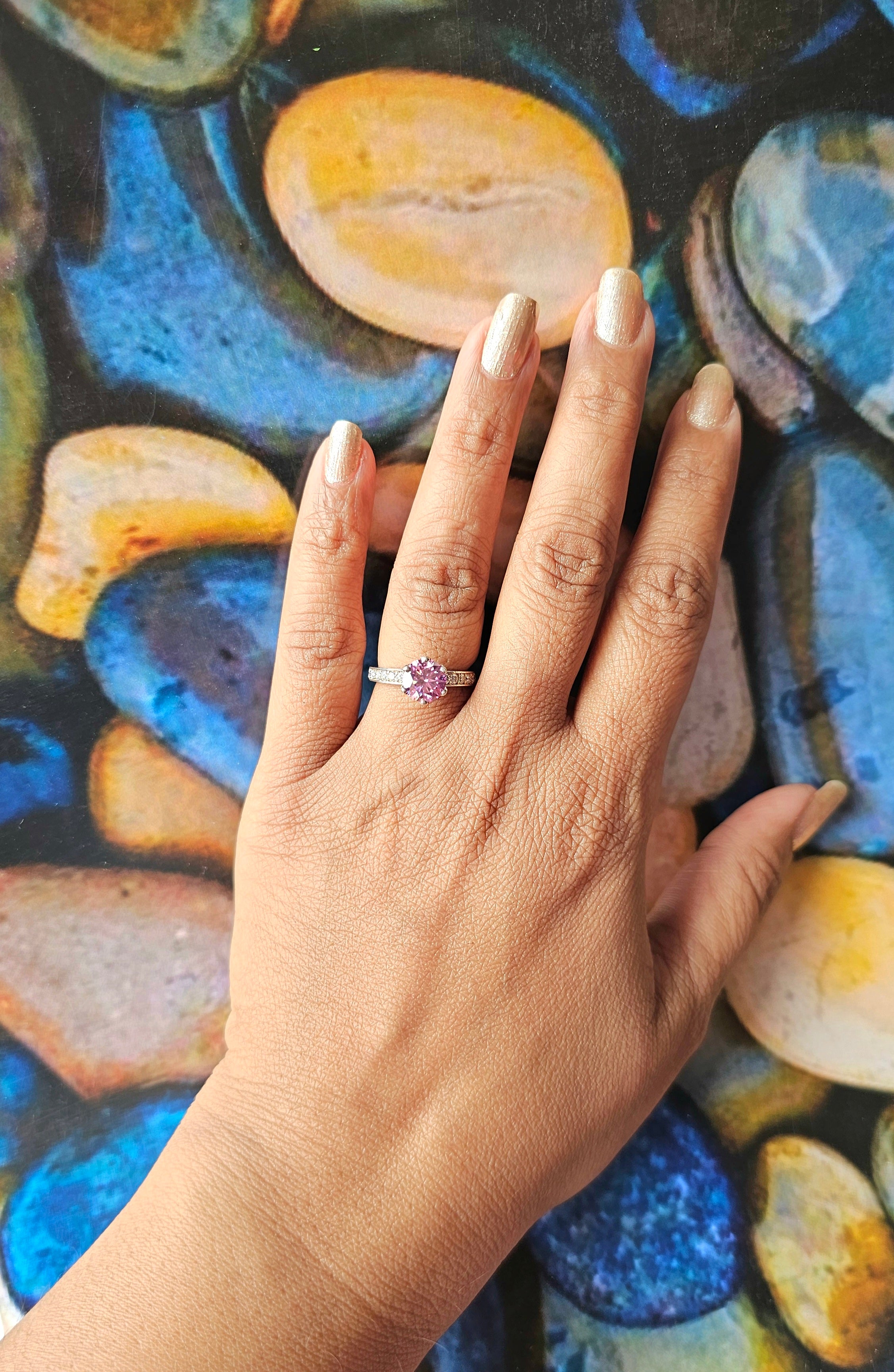 Make a statement with this 1.50 ct Pink Moissanite Engagement Ring, crafted with a brilliant 7.5 mm Round Cut stone. Its soft blush hue and dazzling clarity make it a romantic and timeless choice.