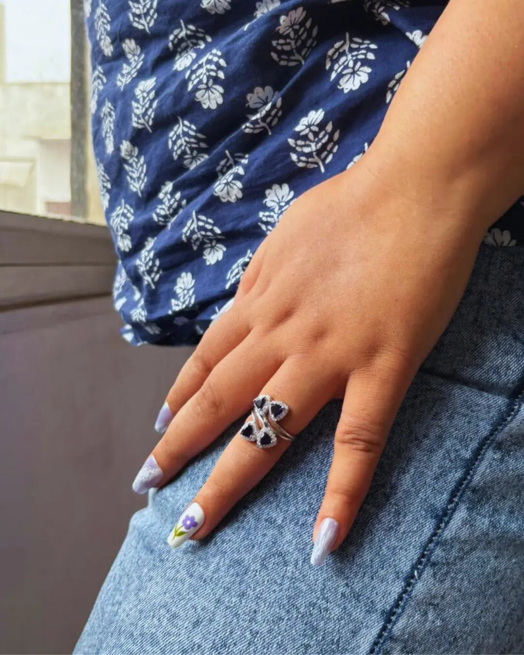 Discover the mystique of twilight with the Midnight Prism – Trillion Iolite Ring. This elegant piece features a natural trillion-cut Iolite gemstone set in hallmarked 92.5 Sterling Silver, designed to shimmer in deep violet-blue tones. A perfect balance of bold geometry and celestial charm, this ring is ideal for birthdays, anniversaries, or everyday elegance.