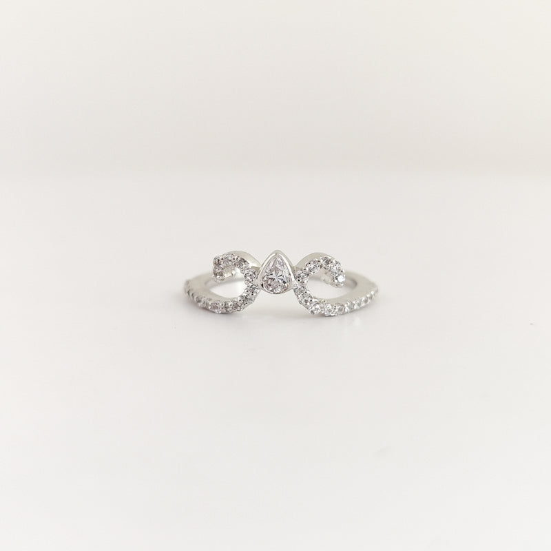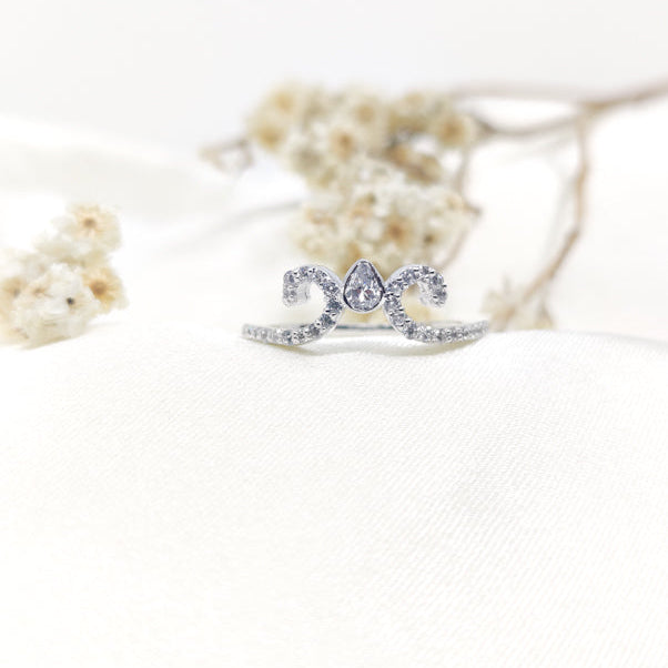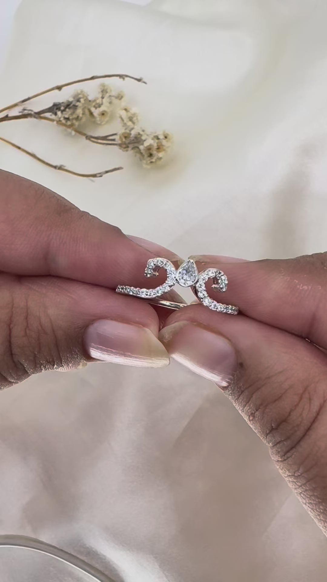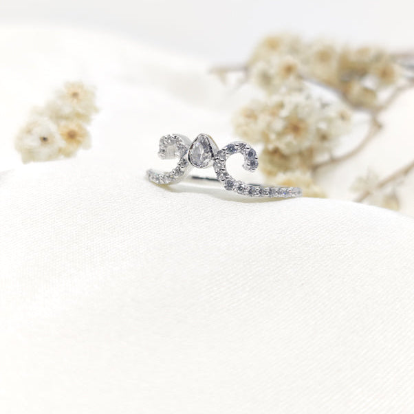 Inspired by the elegance of a swan, the Swan Embrace Ring features a delicate pear-shaped diamond simulant set within a graceful pavé swirl band. Expertly handcrafted in 925 sterling silver, this design exudes charm, purity, and timeless sophistication—perfect for engagements, promise moments, or heartfelt gifting