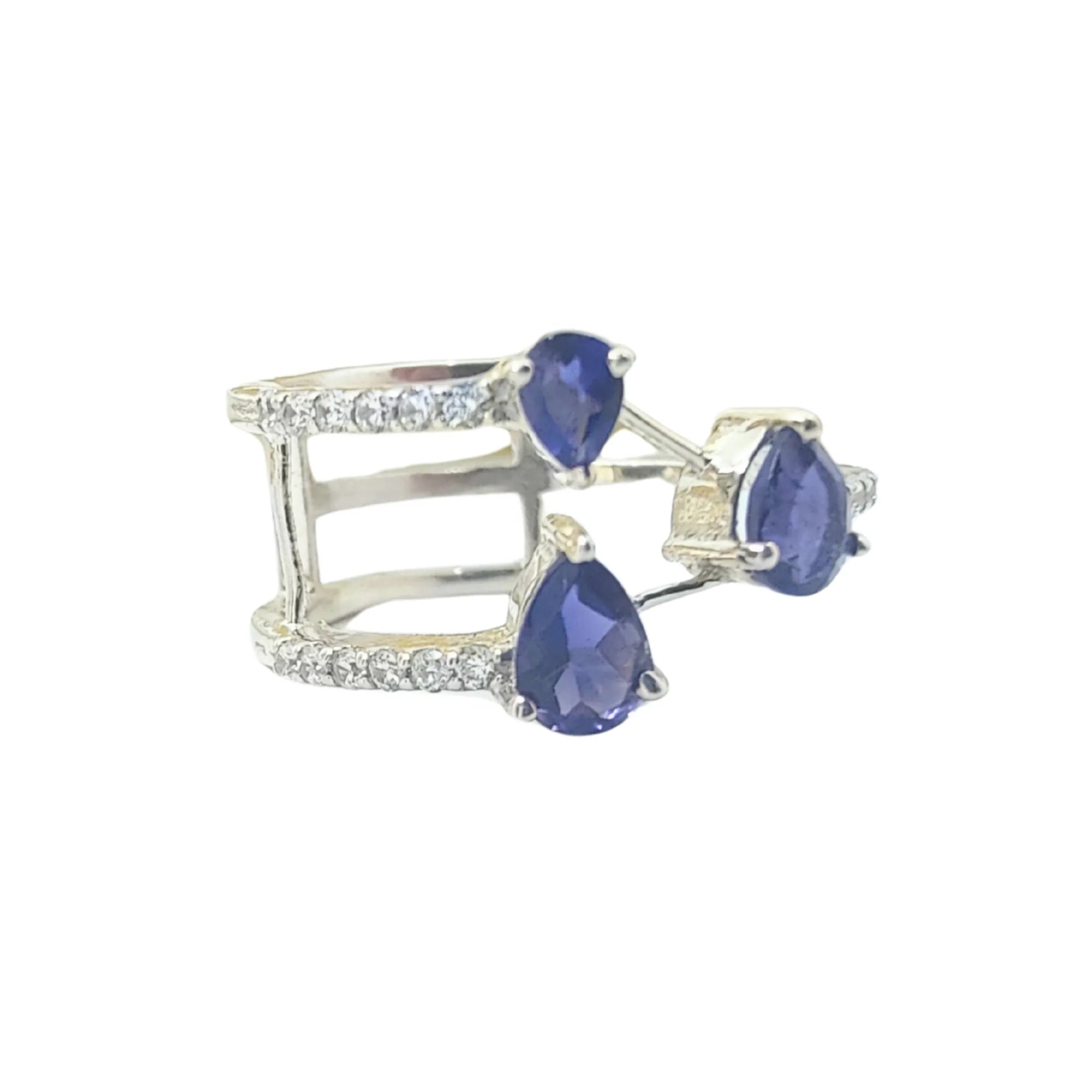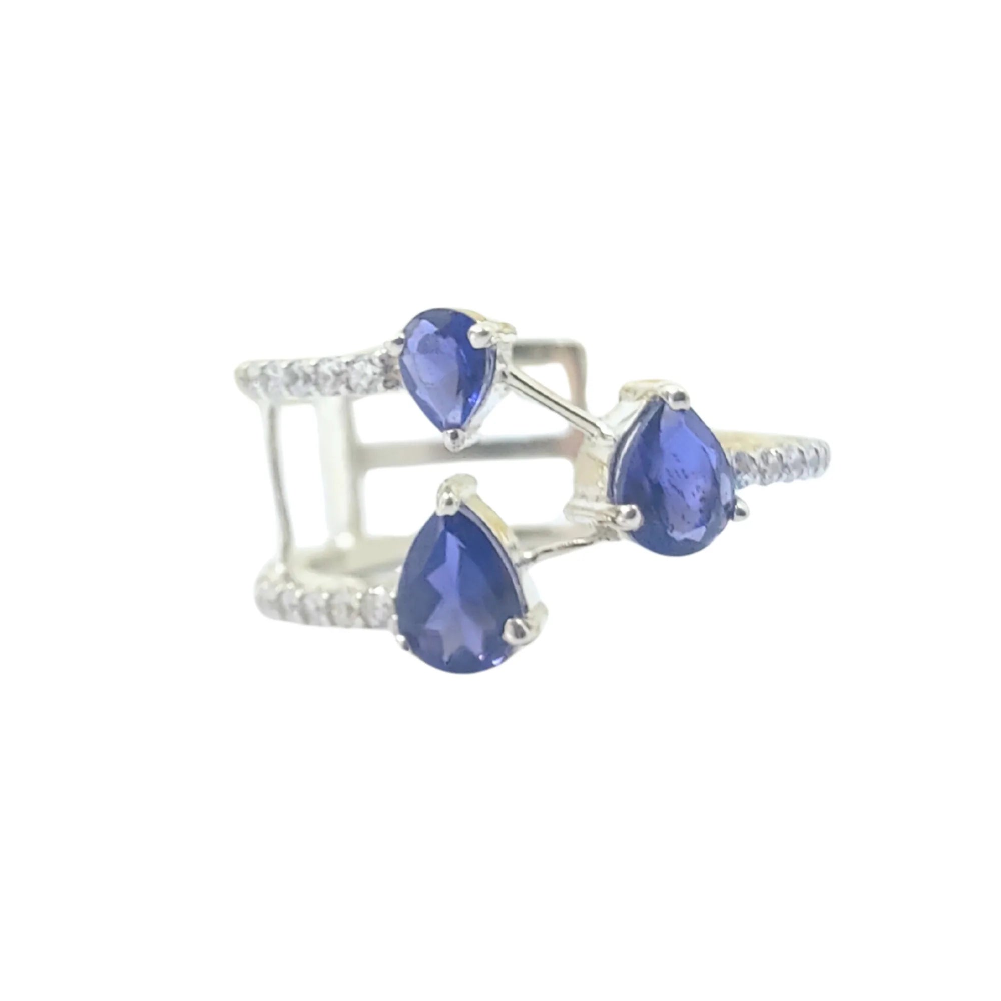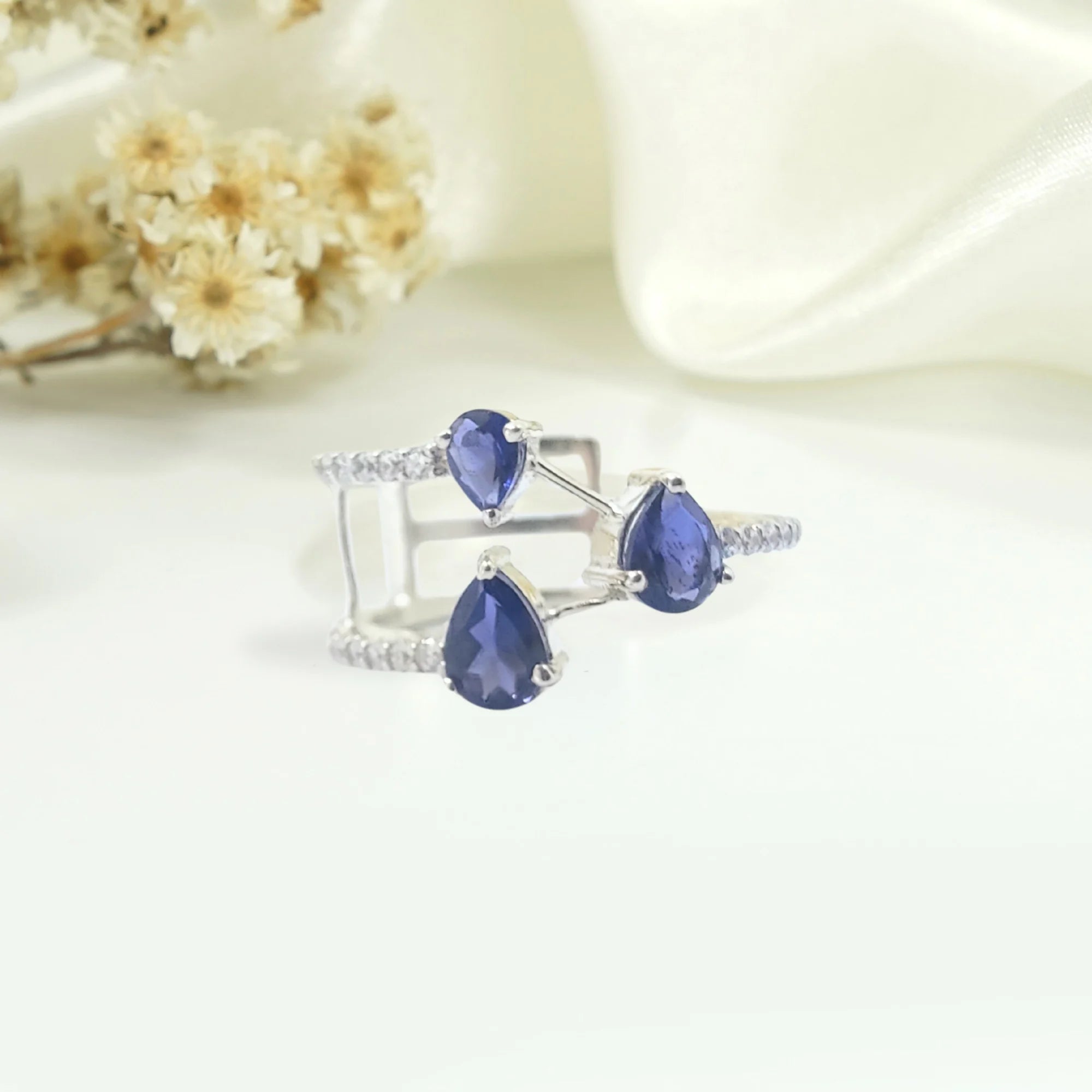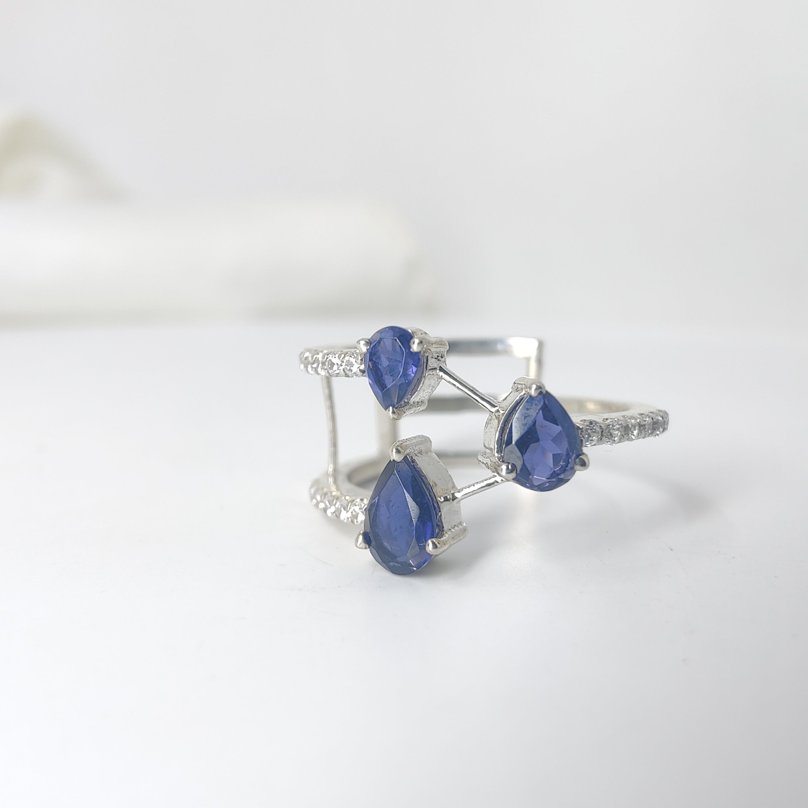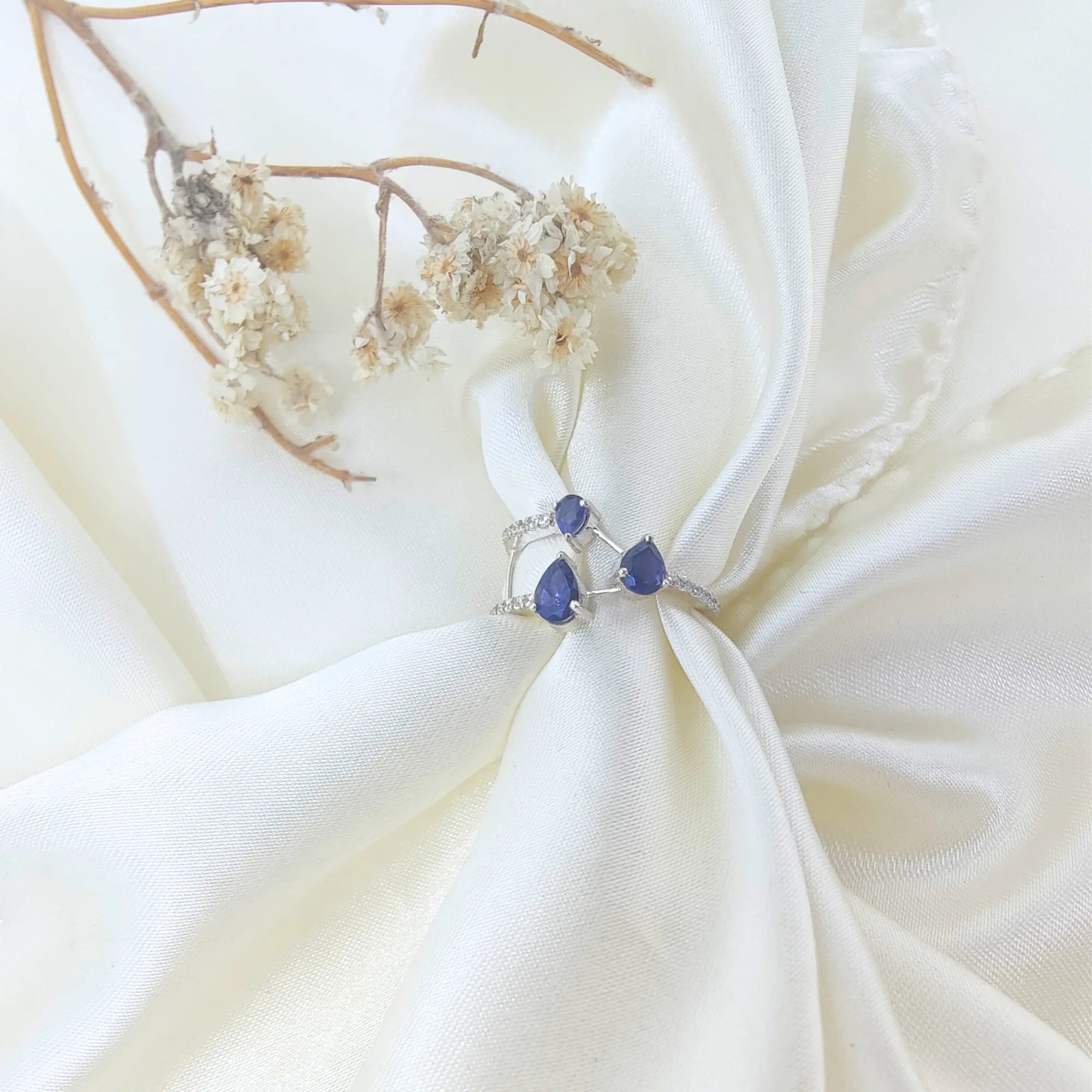 This handcrafted ring features a vivid teardrop blue stone accented with sparkling diamond simulants, symbolizing serenity, clarity, and sophistication. Expertly set in hallmarked 925 Sterling Silver, its adjustable design ensures comfort and versatility, making it a perfect choice for everyday wear or special celebrations.